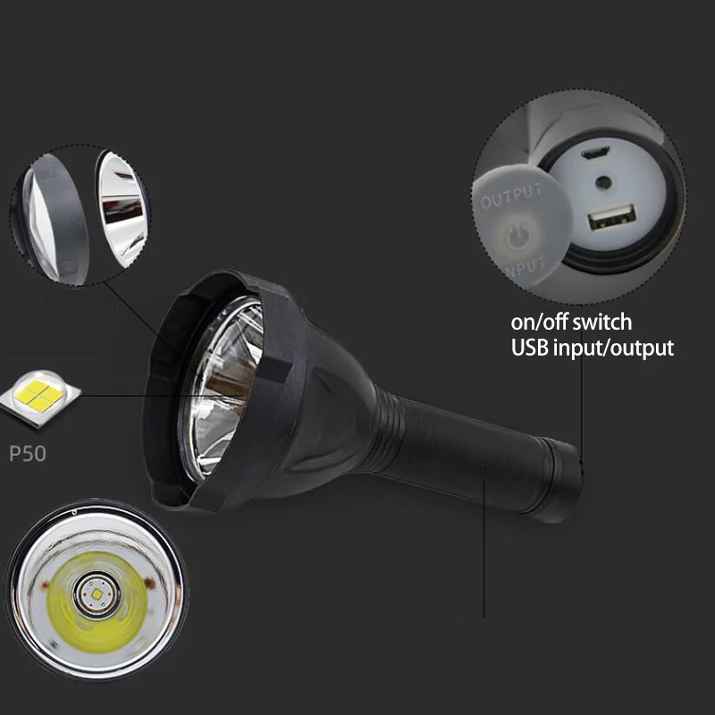 .image of Long Range Searchlight Led Flashlight xhp50.2 USB Rechargeable Powerful super bright lanterna Flash